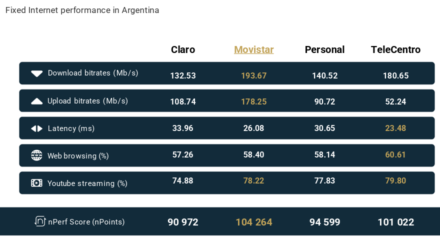 Los nuevos resultados del barómetro de nPerf,con datos del primer trimestre de 2026,muestran “avances significativos de todos los grandes operadores,con mejoras notables en velocidades de subida y mayor jerarquía en la calidad” de las redes fijas de Argentina. Todos los protagonistas del mercado mostraron “mejoras importantes que reflejan una inversión sostenida en la infraestructura fija del país”,sentencia el informe.